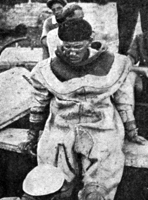 Однако, предложенный ему для работы специальный водолазных колокол ограничивал обзор и движение под водой, поэтому не подходил для съемок. Поэтому было принято решение использовать водолазный костюм системы Денейруза, позволявший свободнее передвигаться по морскому дну. В этом костюме Б. Б. Цейтлин провел первую съемку под водой в районе Балаклавы, сняв остов английского корабля «Черный принц»: «Результаты уже первой съемки показали, что кинематографирование под водой – дело реальное». Перед этим пришлось решить ещё одну сложную техническую задачу – подготовить обычную кинокамеру к подводным съемкам. Опыт мировой кинематографа в области подводных съемок исчерпывался использованием систем специальных трубок и зеркал, а первая подводная кинокамера будет создана только в 1933 г. В первом опыте съемок любительский ручной киноаппарат «Кинамо» был помещен в резиновый чехол с иллюминатором для объектива [21, с. 27].