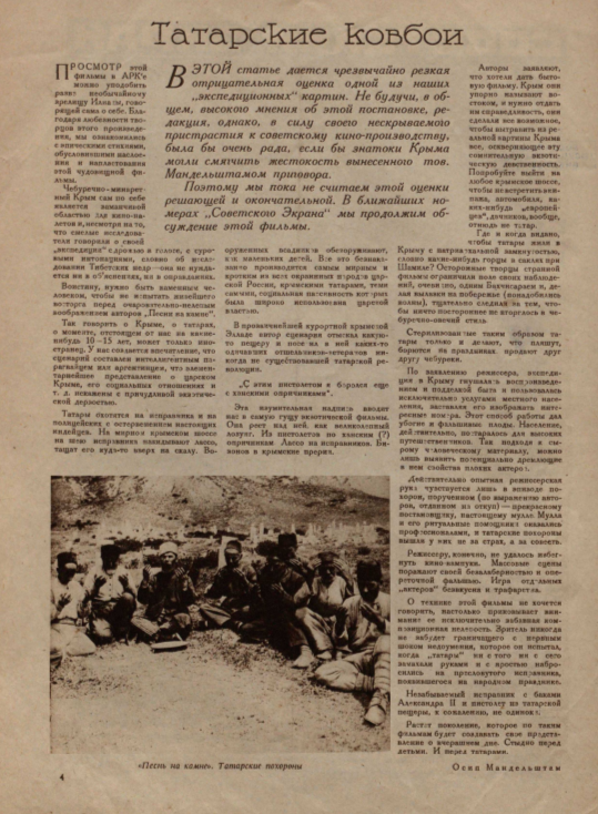 Статья О. Э. Мандельштама «Татарские ковбои» в журнале «Советский экран», 1926 г.