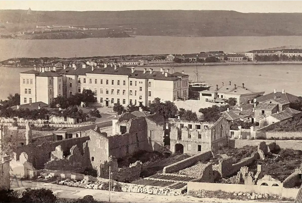 Рис. 1. Панорама прибрежной части Севастополя у Карантинной бухты (1850–1860-е гг.)